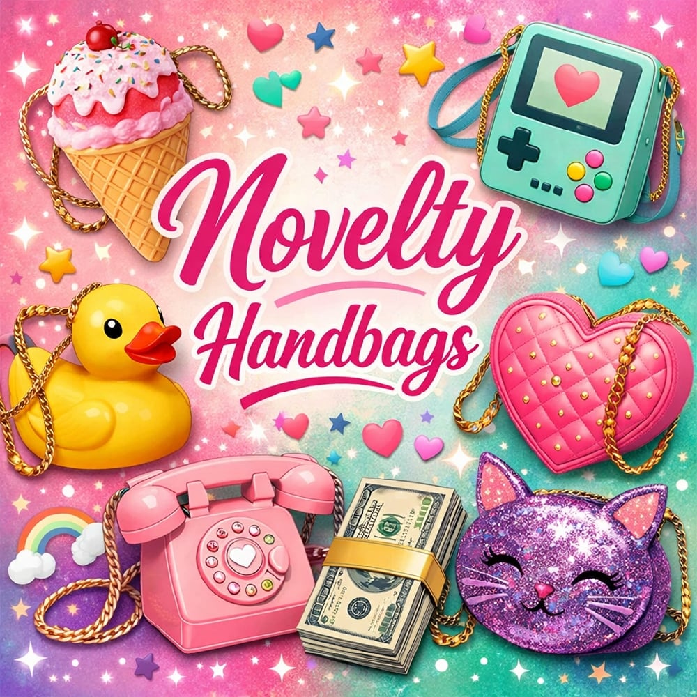 Variety of novelty, fun theme handbags. Crossbody friendly.